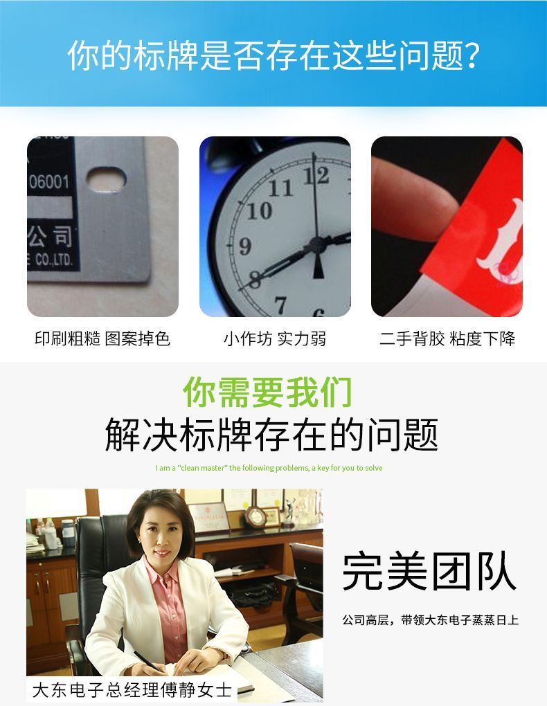 請(qǐng)勿使用研磨性清潔材料 -與清潔劑一樣,還應(yīng)為金屬標(biāo)簽仔細(xì)選擇清潔材料。應(yīng)避免使用擦洗布,粗布和硬毛刷,因?yàn)樗鼈儠?huì)劃傷金屬銘牌的表面。如果需要擦拭標(biāo)簽的角落和縫隙,請(qǐng)使用軟毛刷。向下擦拭時(shí),請(qǐng)使用柔軟的布,最好是超細(xì)纖維,以免刮傷。